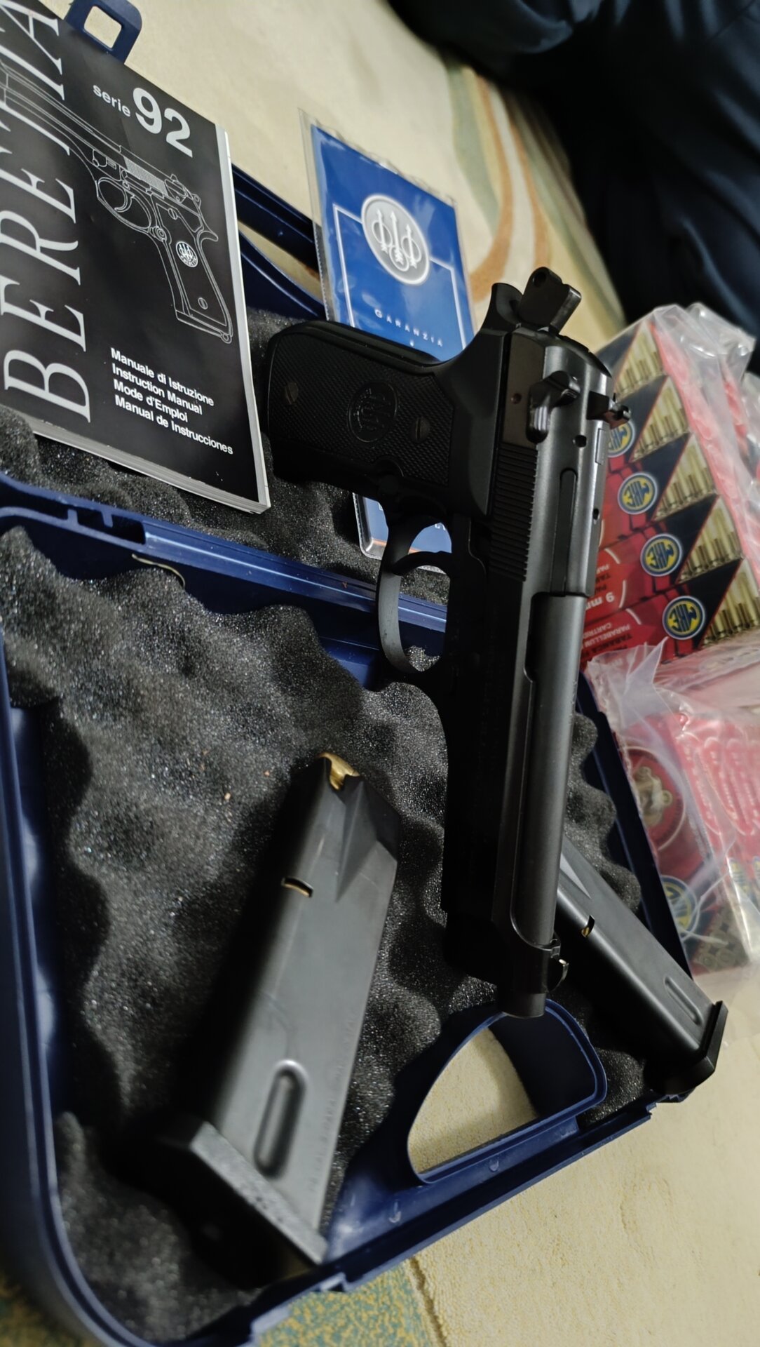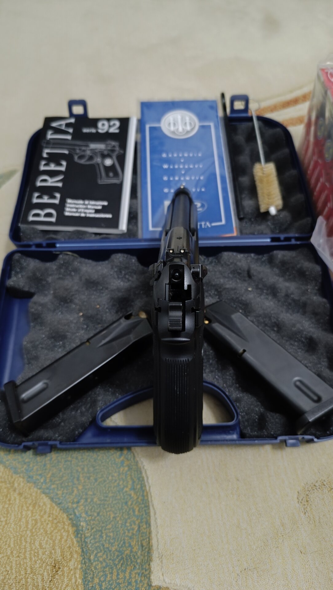 Beretta F92 15+1 Sıfır Kutusunda. 2 şarjör deneme atışı hariç kullanılmamış kasa silahıdır. Yanında 1000 adet mermi ücretsiz verilecektir. Orijinal kutusunda belgeleriyle yedek şarjör verilecektir.