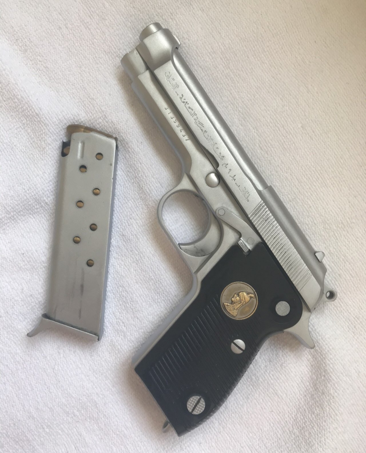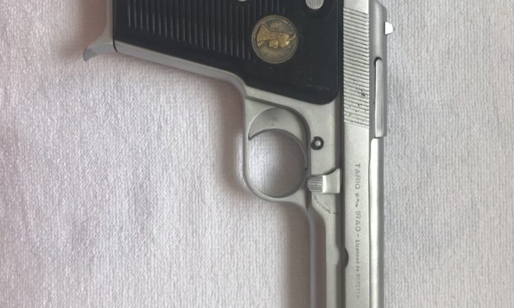 Saddam’ın özel olarak İtalyan Beretta’ ya yaptırdığı 9 mm. 8+1 mermi kapasiteli özel yapım bir silahtır. Adı Tarıq diye geçer. Silah tamıyla orijinaldir. Silahın özelliği namlusunun ısınmaması, tutukluk yapmaması. Emniyet mensubundan taşıma ruhsatlı çok temiz bakımlı diri ve kitap gibi çalışan bir efsanedir. Orjinal iki adet şarjörü yanındadır.Ünlü sözün tabiriyle : ” Namlusu şişmez bunun, ısınmazda. Üstelik meydanlıkta ateş ettinmi gümbürtüsünden bir Allah’ın kulu yanına sokulmaz”Çok gür sesiyle ve atış isabeti bilinir.
