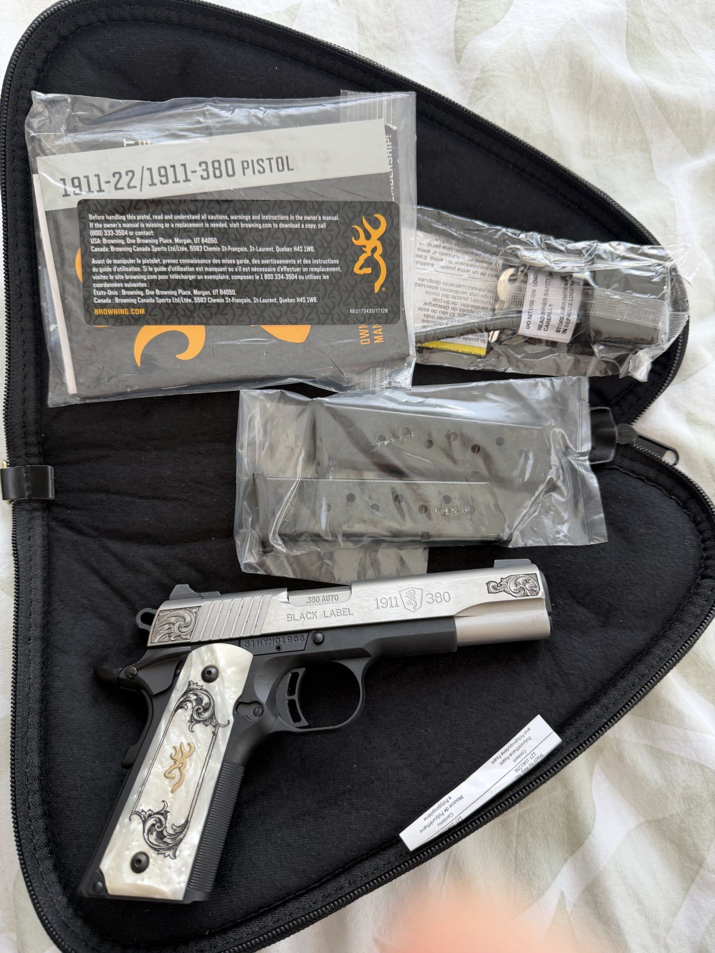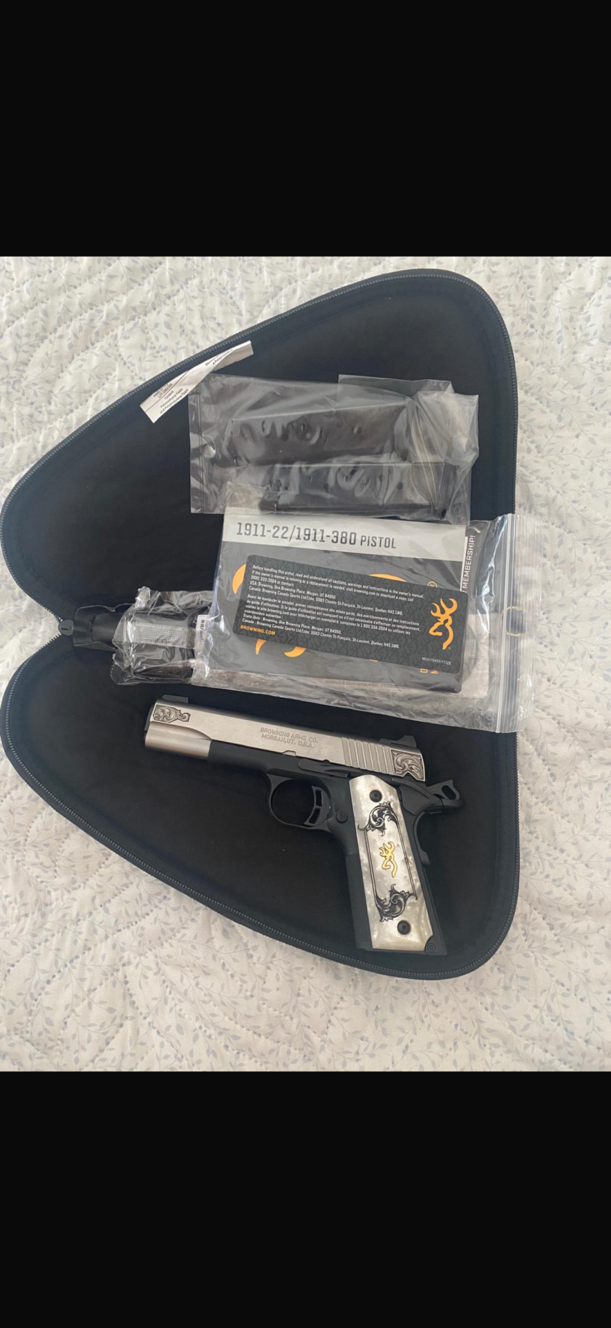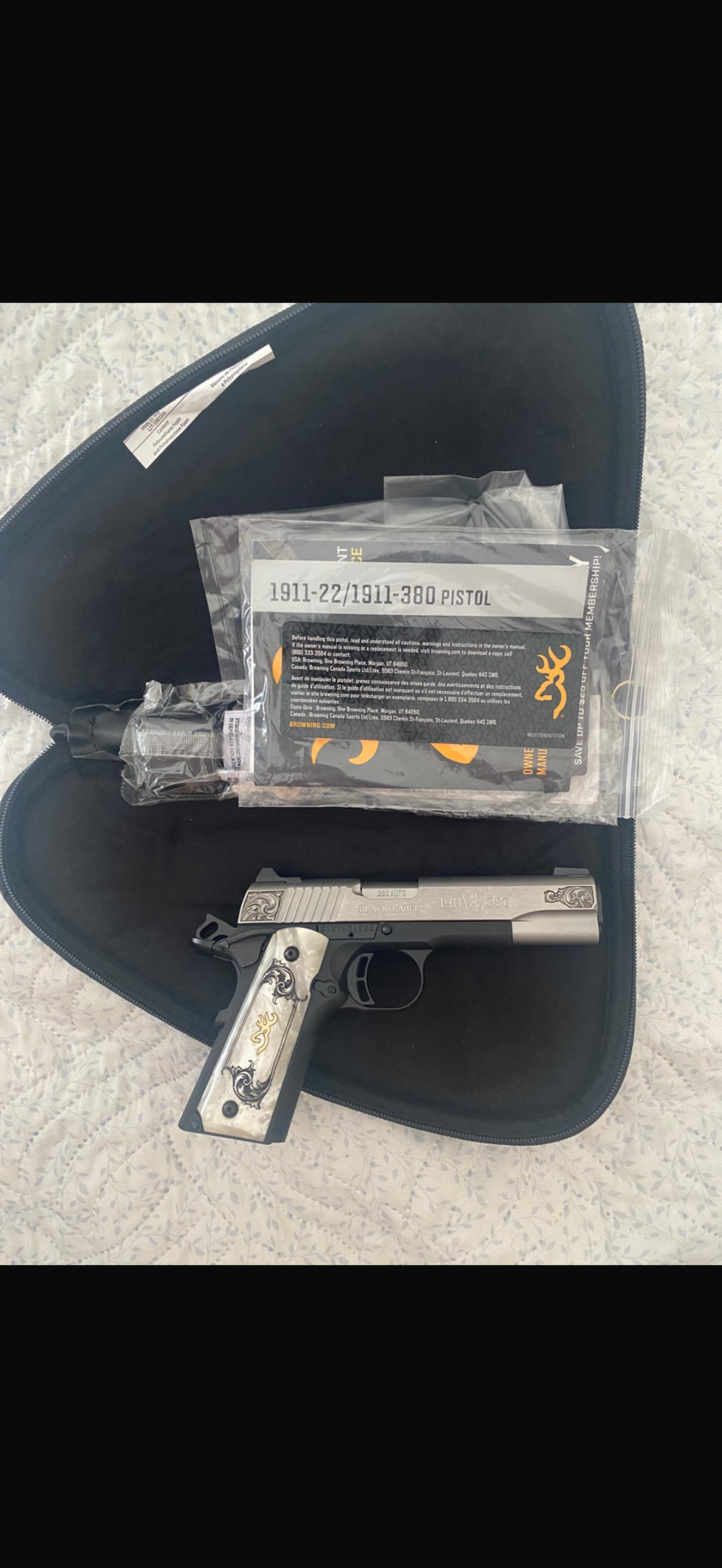 - Browning 1911-380 Black Label tabanca, diplomatik permi hakkı ile ABD’den ithal edilmiştir. Hiç kullanılmamıştır. Son derece zarif ve kullanışlı bir modeldir. Detaylı incelemesi aşağıdaki bağlantıda görülebilir.