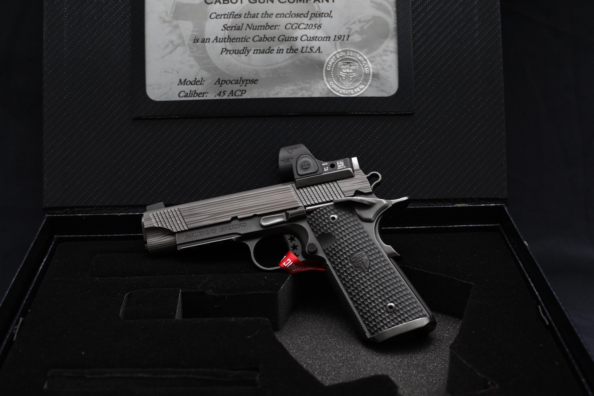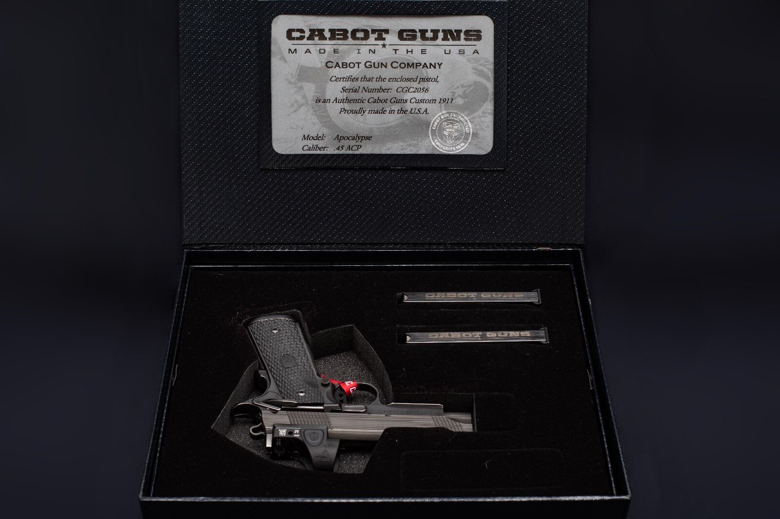 Yarı otomatik, single stack yapıda olan bu özel üretim model, .45 ACP kalibre ve 8+1 kapasite ile hem güçlü hem dengeli bir performans sunar. Tamamı, dünyaca ünlü Amerikan üretici Cabot Guns tarafından el işçiliği (hand-fit) ile üretilmiş olup, seri üretim silahlardan tamamen ayrılır.