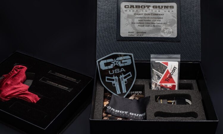Kutu içeriğinde Orjinal Cabot Guns sertifikası (COA) , 2 Adet şarjör , Susturucu uyumlu yedek namlu , Kilitleme Aparatı , Red Dot ekipmanları , Cabot Guns bakım bezi ve Dökümanlar bulunmaktadır .