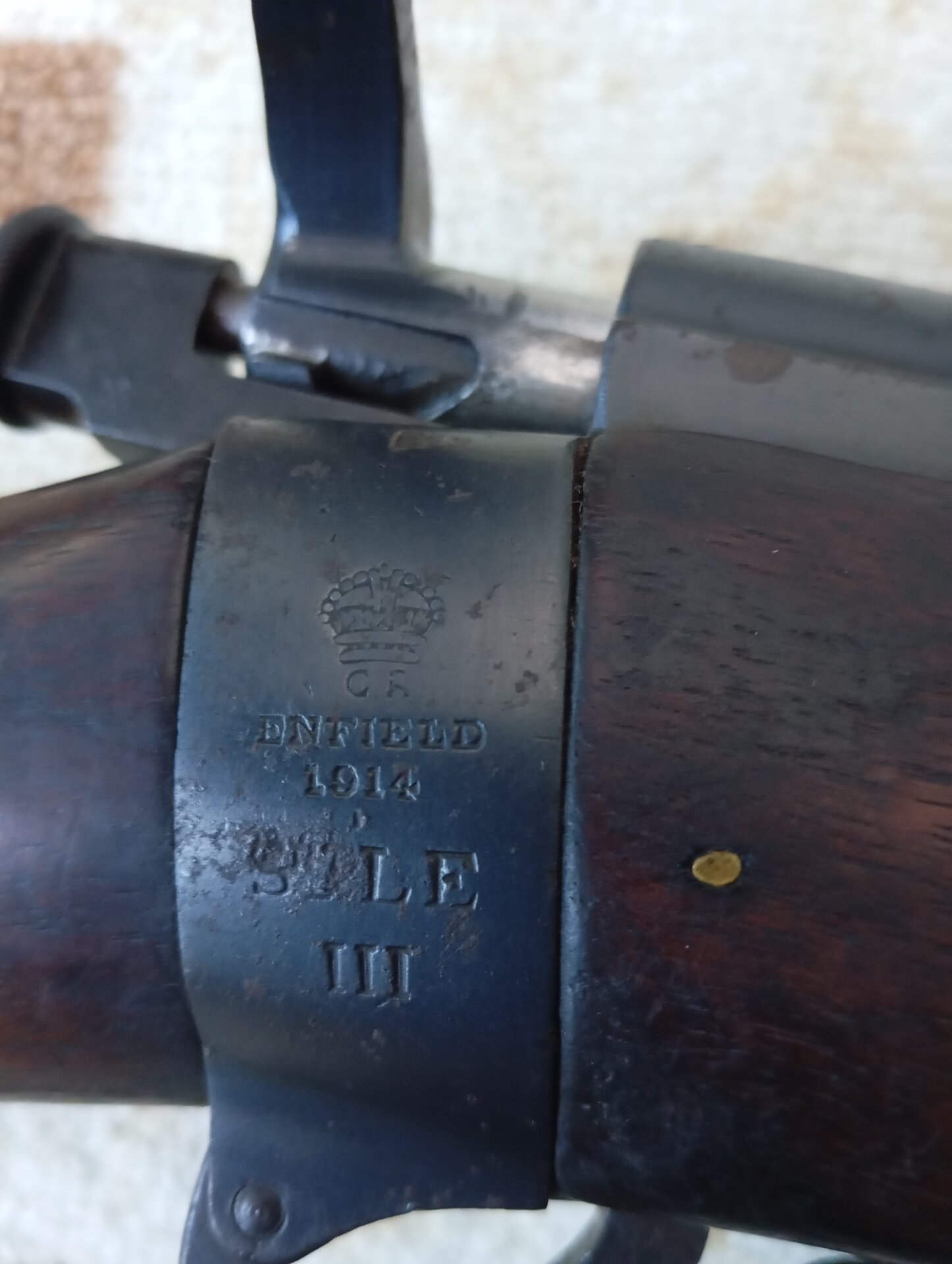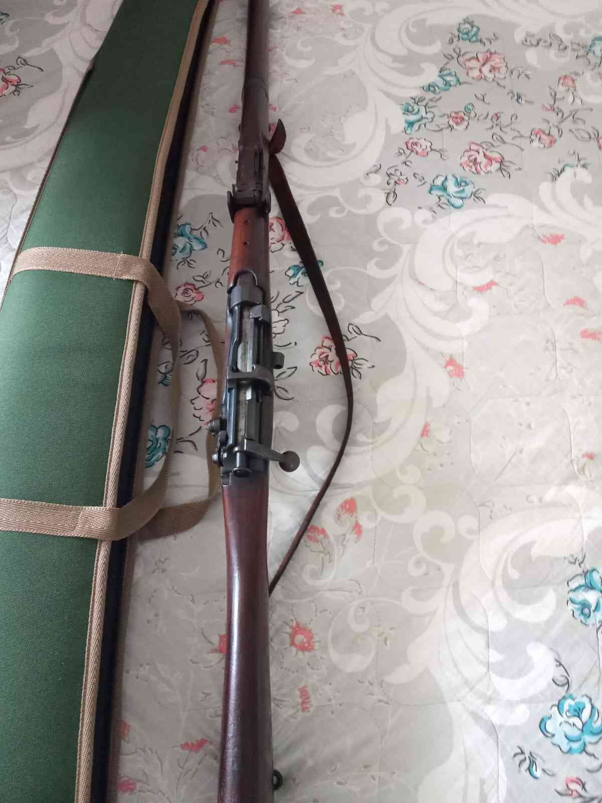 1914 tarihli, İngiliz üretimi Enfield SMLE No.1 Mk III (.303 British) yivli tüfek. Üzerindeki fabrika ve tarih damgaları okunaklı, koleksiyon değeri yüksek bir modeldir. Tarihi hatıra ve koleksiyon amaçlı düşünenler için ideal.