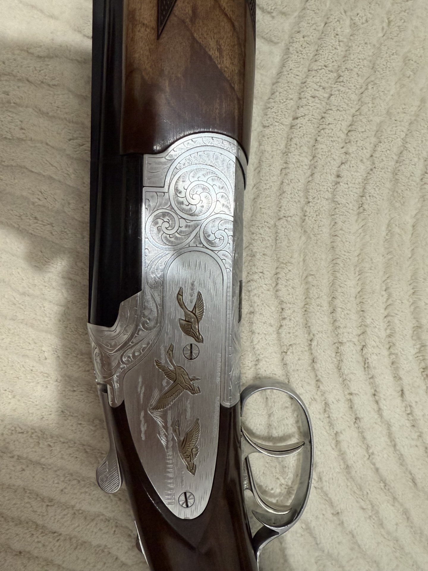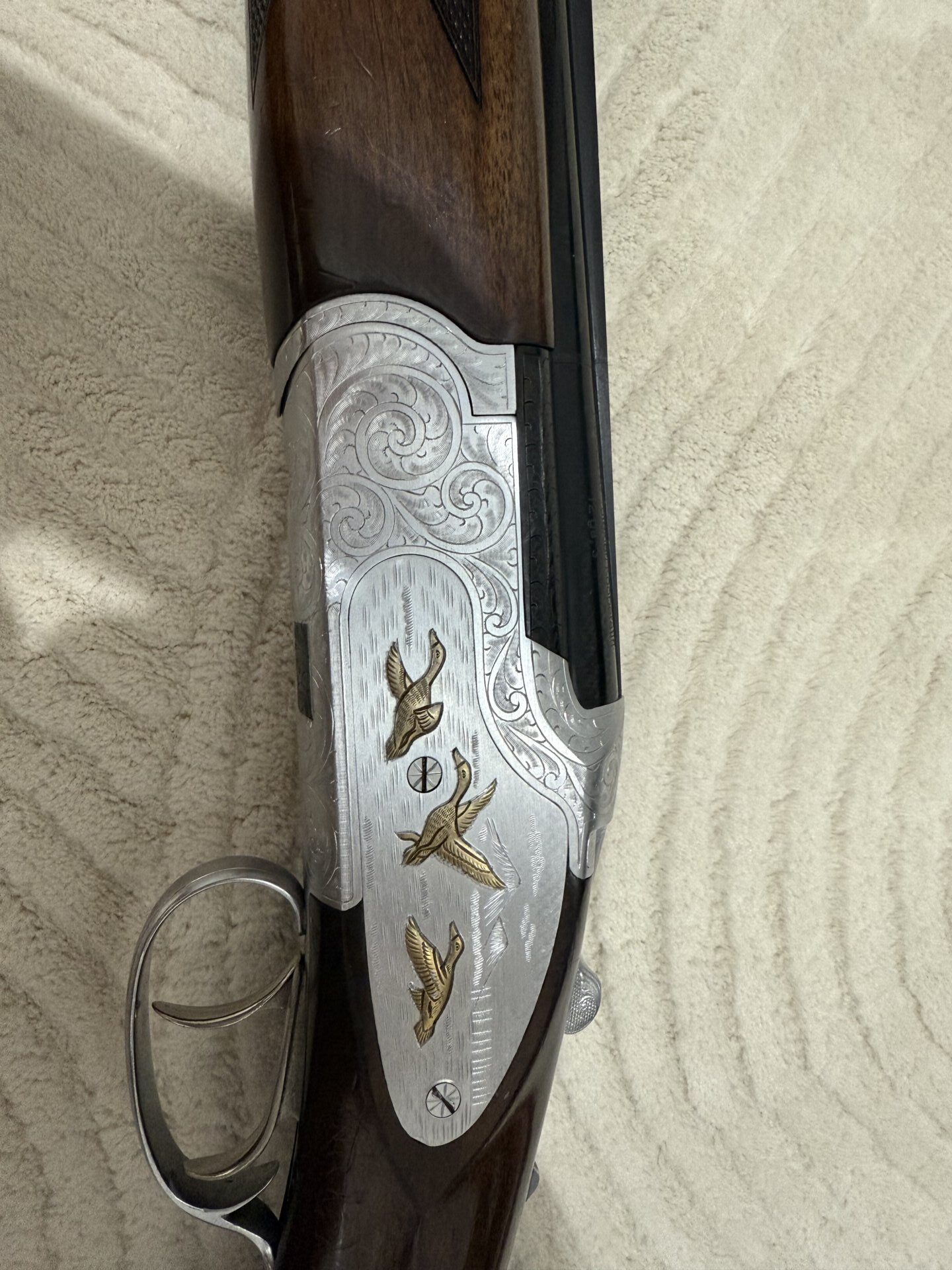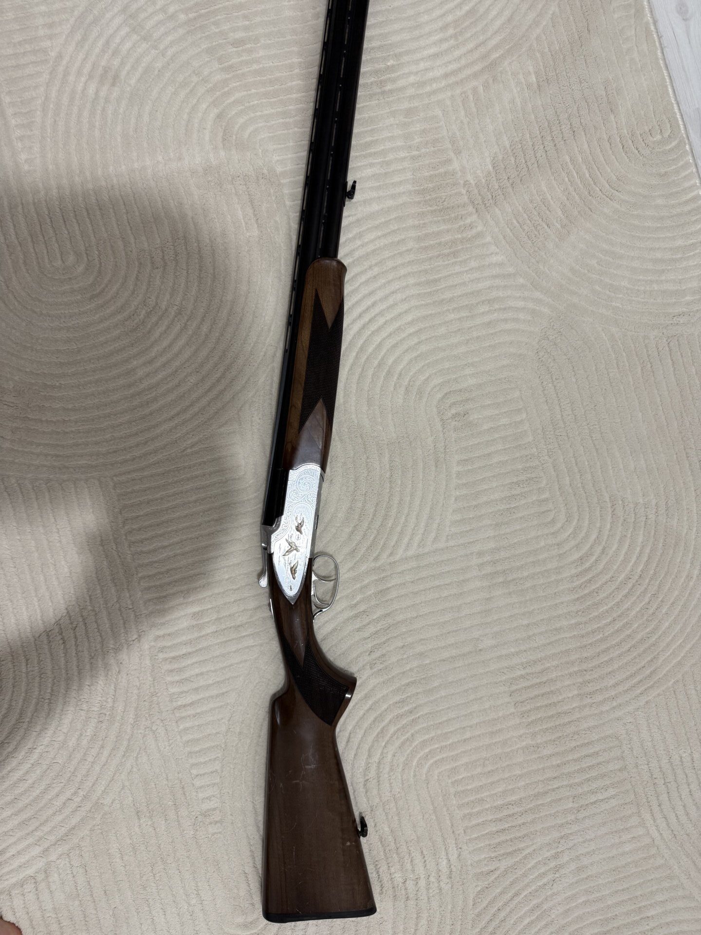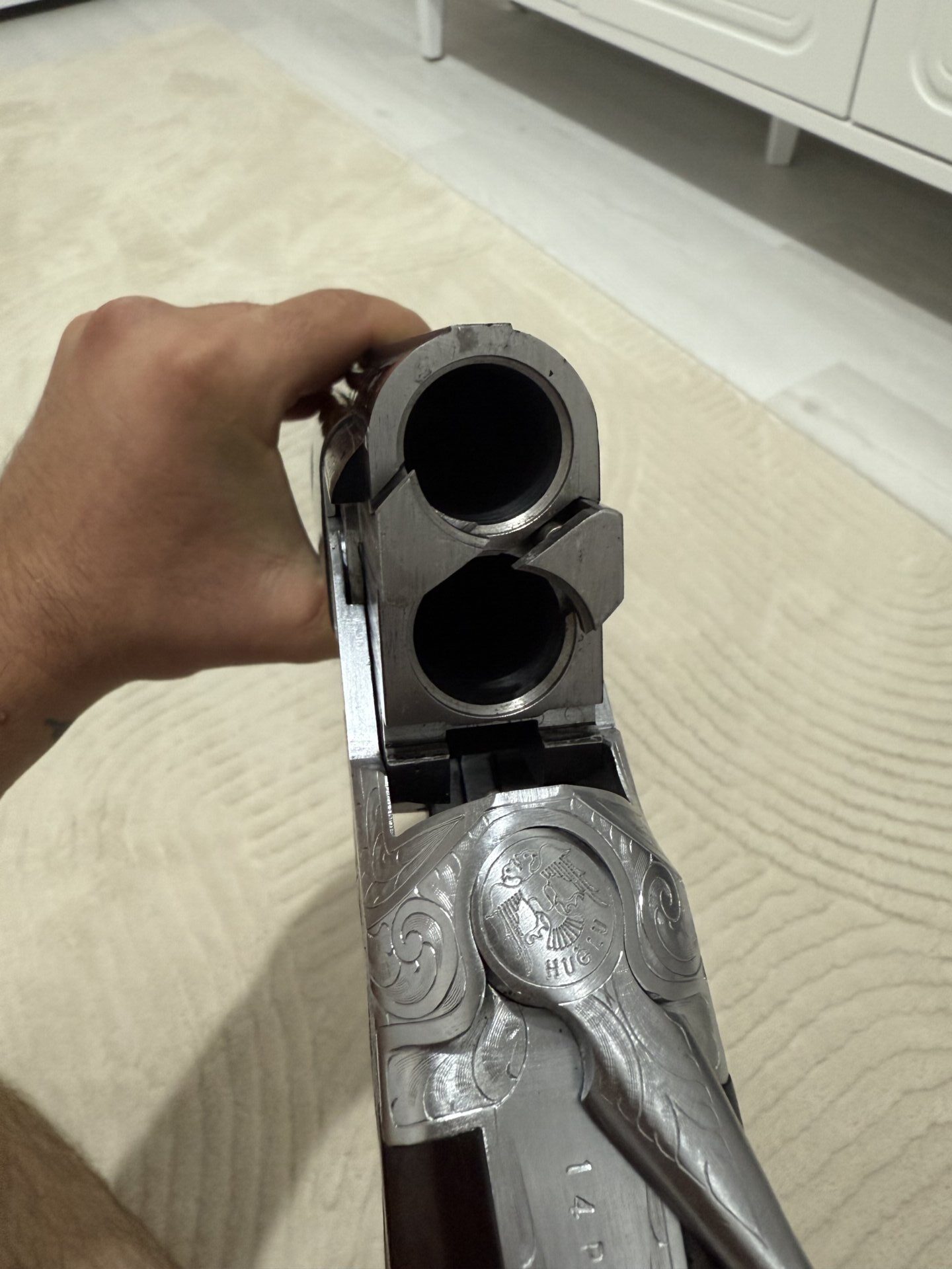 Huğlu 104 AE Süperpoze Enjöktörlü namlu ara soğutmalı çift tetik 71 namlu işlemeli tüfek 20 fişek anca atıldı