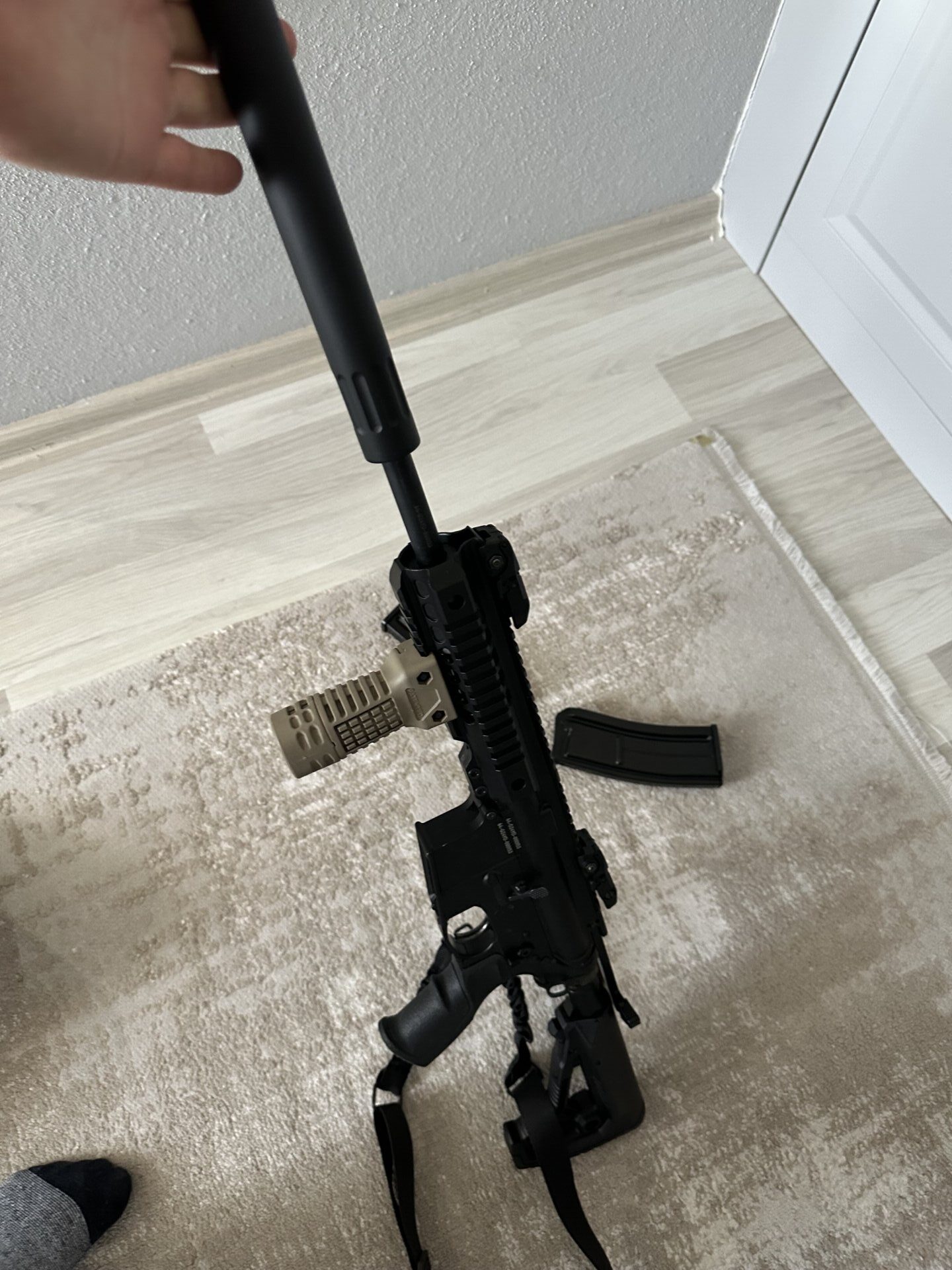 Husan Arms M71 36 Cal Yarı Otomatik Av Tüfeği dikey tutamak ekledim orijinal tabanca kabzesi ile aynı markadır Dlg markadır,üzerinde vereceğim.Tüfeği temiz kullandım herhangi bir aksaklığı yoktur.Ar platformu bir silahtır.Bps Yaf Zuber marka tek kurşunlarla atış yaptım bir sorunu sıkıntısı olmadı.Yivli tüfek alacak olmam dolayısıyla satıyorum.Eğitim atışı yapılmıştır.1 yıl öncesinde aldım.Her atıştan sonra bakım ve temizliğini yaptım 36 cal harbi setini de vereceğim.Sarmaz hedefi tam vurur en çok tutulan model susturucu görselli namlu giydirmede vardır.Alıcısına hayırlı olsun çocucuklarınız silaha alıltırmak için birebirdir.Atıcılık sporuna yeni başlayanlar için bulunmaz hint kumaşı gibi makinadır.Muadil diğer markalarıda kullandım fakat bunun platformu başka bir kaliteye sahip şarjör dahil full metaldir