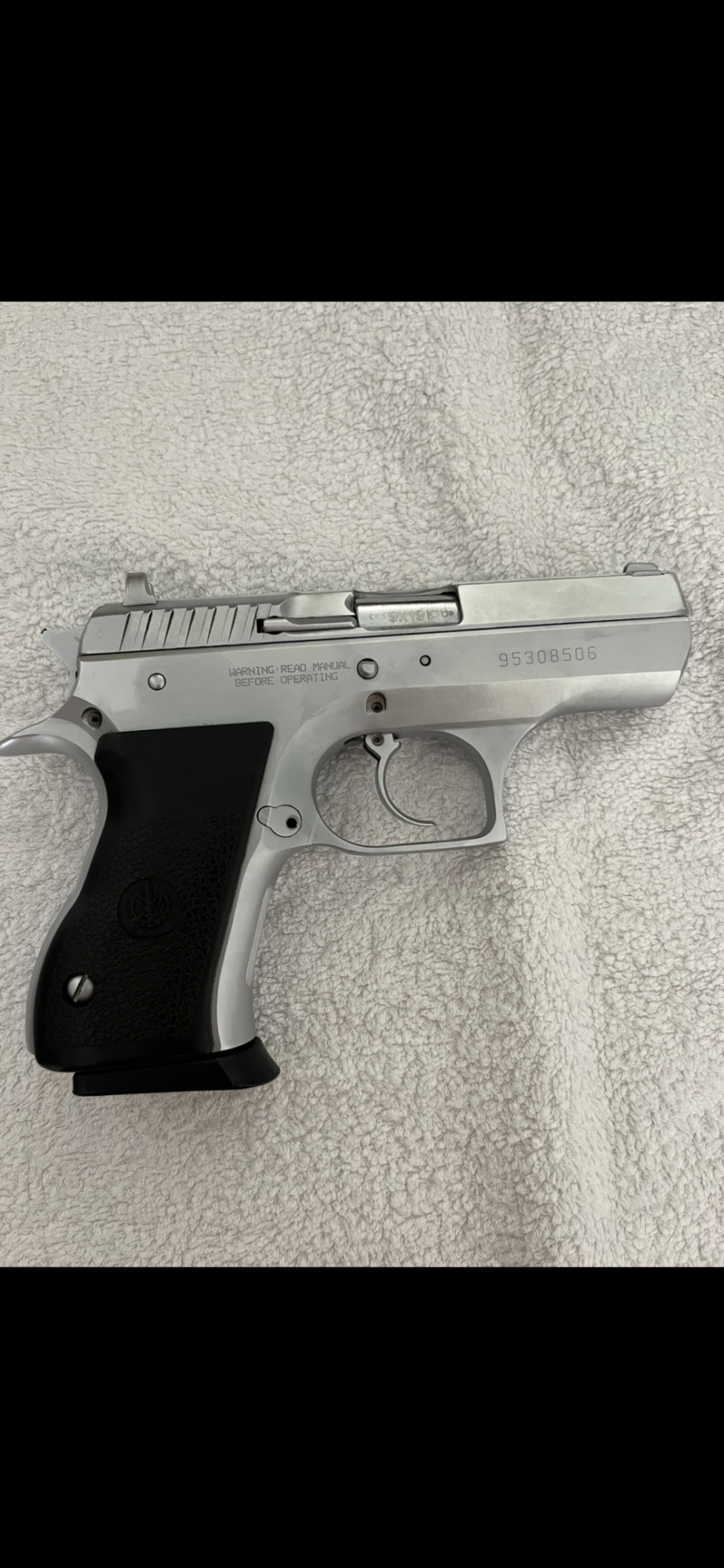 SİLAH 13+1/9MM/ 9*19/ ÇİFT ŞARJÖR LUDUR, SIFIR AYARINDA OLUP TOPLAM 30 SEFER ATEŞ EDİLMİŞ, SİLAHIN SİYAH BOYASI TAMAMEN SÖKÜLÜP TEMİZ ZEMİN ÜZERİNE BEYAZ KROM NİKEL KAPLAMA YAPILMIŞTIR, BU KAPLAMA M.K.E ONAYI İLE M.K.E’DE YAPILMIŞTIR.