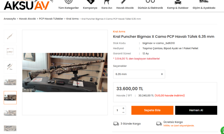Kral Bigmax X Camo tüfeğim ve aparatları satılıktır. Boş duruyor kullanmıyorum. İçerik: