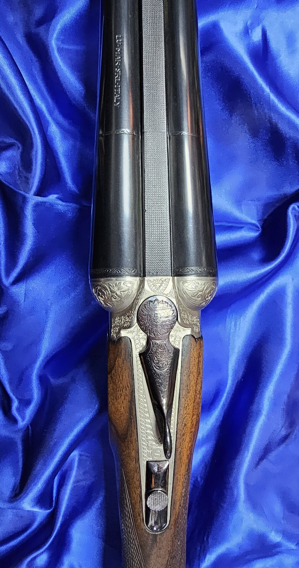İtalyan Lu-mar çifte 12 kalibre 61 cm *****/***** fix şoklu namluya sahiptir. Tek tetik ejektörlüdür. Uzun yıllar kılıfta kalmış kullanılmamıştır. Yivsiz av tüfeği satın alma belgesine fatura kesilip teslim edilecektir. WhatsApp üzerinden detaylı resim gönderilebilir.