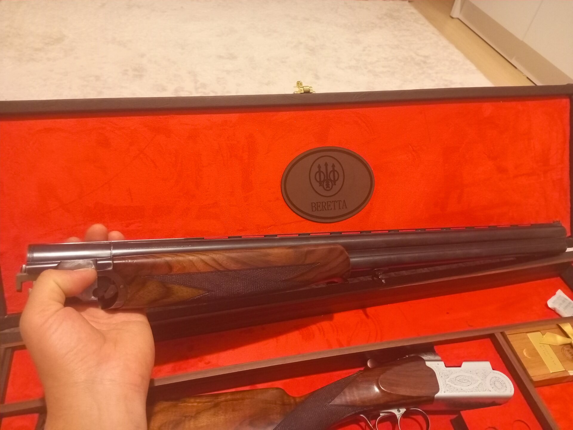 Merhabalar Pietro Beretta S56E tüfek son derece temiz olup ender bulunan sınırlı üretim 67 namlu ve 4/2 şok değerlerine sahiptir herhangi bir sorun bulunmamaktadır. Ekstra olarak numaralı kök ceviz kundağı Abdullah Kara yapımıdır bu dipcigin kauçuk ve ahşap olmak üzere iki model dipçik kapağı vardır. Orjinal dipçik takımı bakimlari yapılmış ve orjinal beratta micro ped kapak vardır şifreli çantası yine orjinal beratta. Kullanıcıya ve koleksiyonere emsalsiz bir takımdır. Tüfek fazlalığından satılıktır lütfen takas teklif etmeyiniz.Alan satan hayrını görsün..