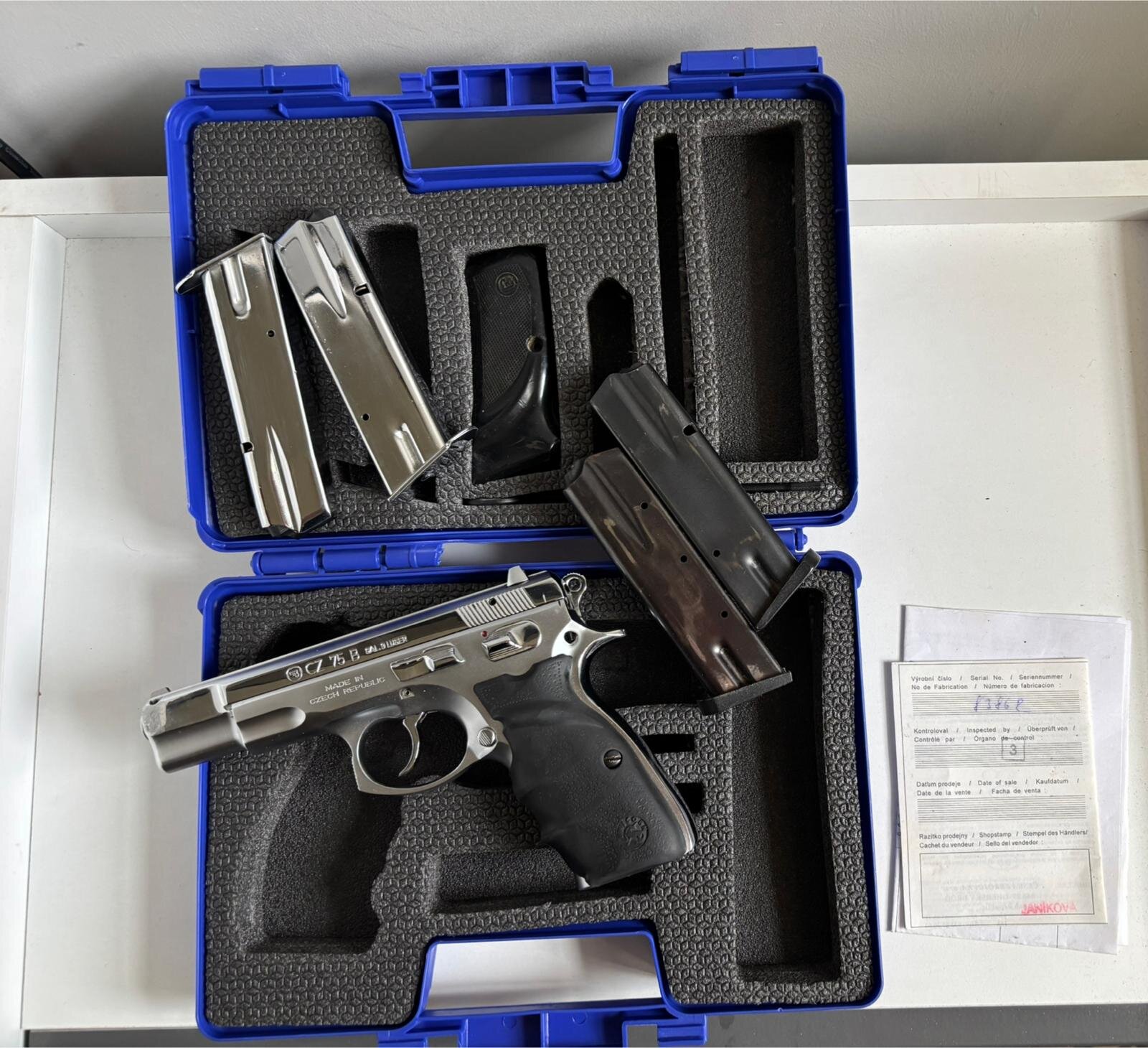 Ruhsatlı CZ 75 B tabanca temiz ve kromajlı durumdadır. Yanında 4 adet yedek şarjör verilecektir. Düzgün ve bakımlı bir üründür. Pazarlık payı vardır. Detaylı bilgi için iletişime geçebilirsiniz.