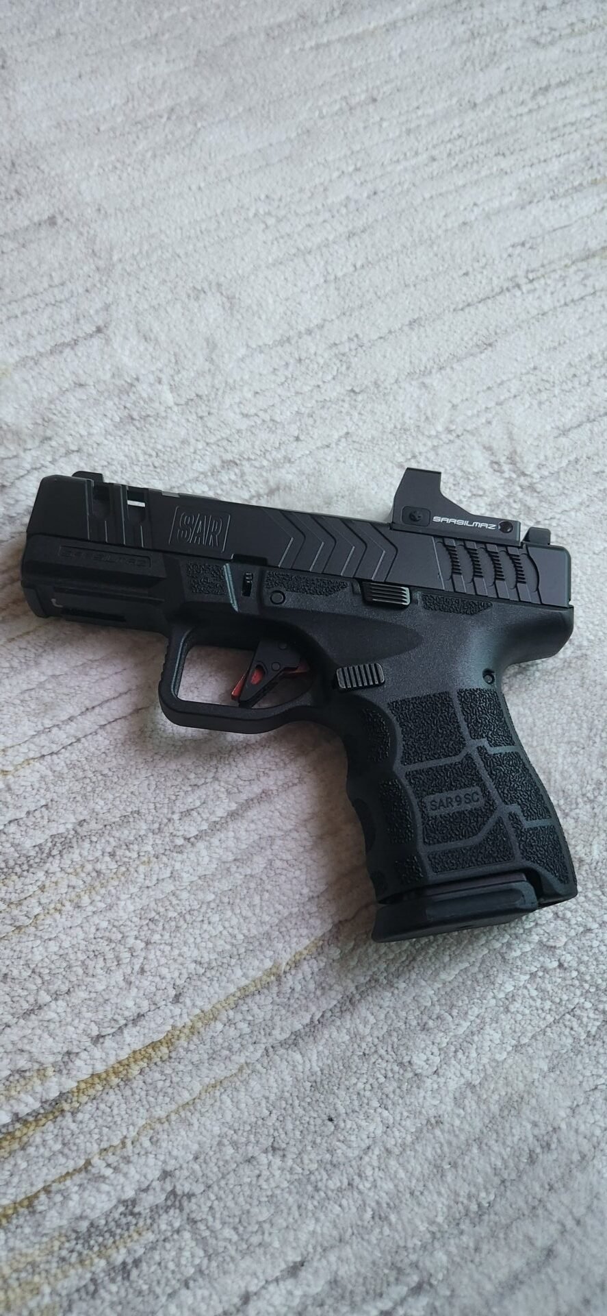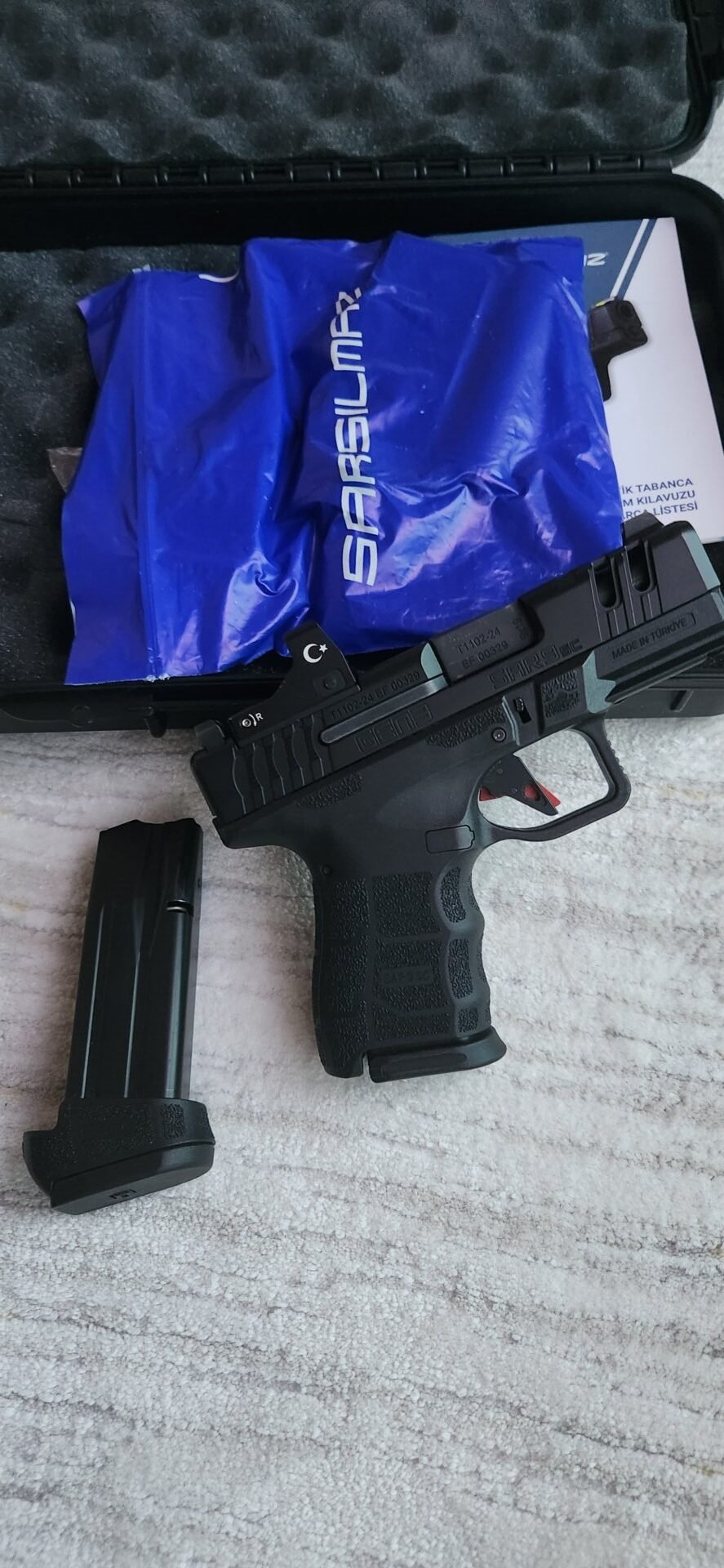 Sıfır kutusunda Sarsılmaz SAR9 SC GEN3 9mm tabancam ile hiçatış yapılmadı. Reddot hariç fiyatıdır. 12 ve 15’lik iki adet şarjör vardır.