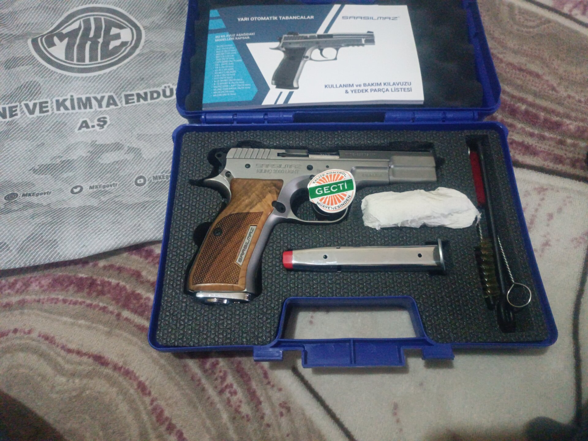 Uzman Çavuş dan sıfır ayarında Kılınç 2000 stellin mat çiziksiz tabanca yeni kutulu içindeki orijinal yağına kadar duruyor silahı kullanmak nasip olmadi