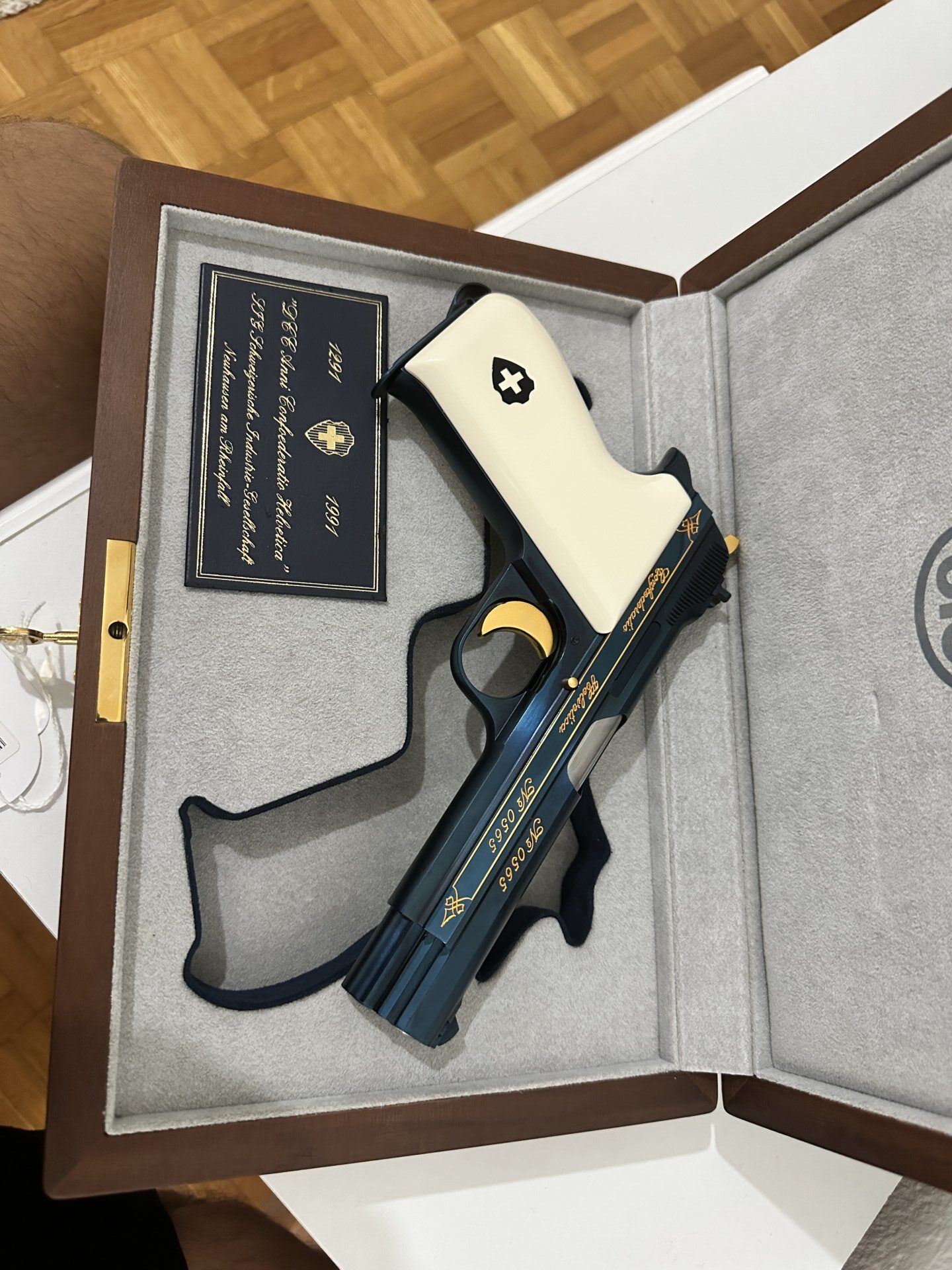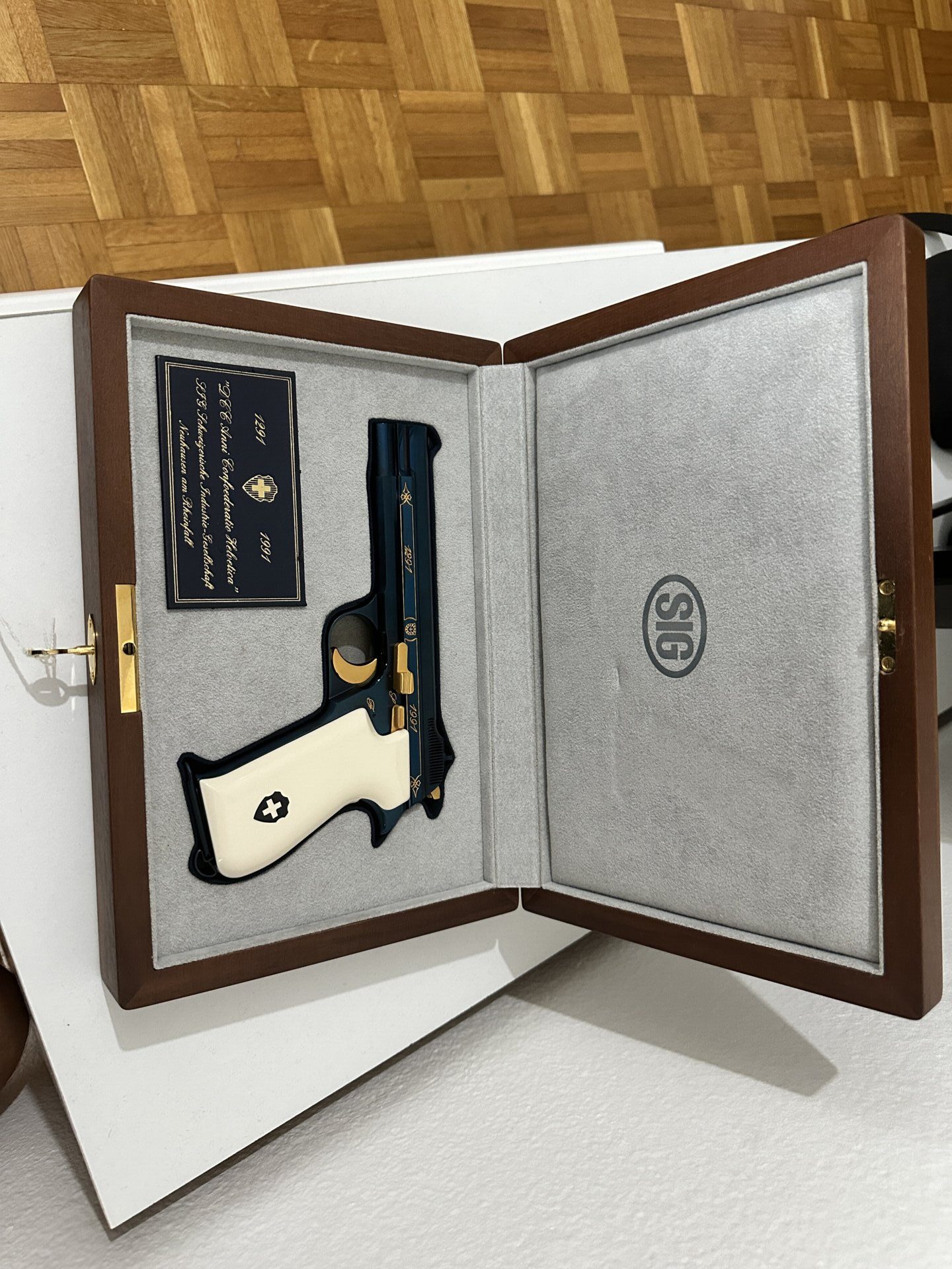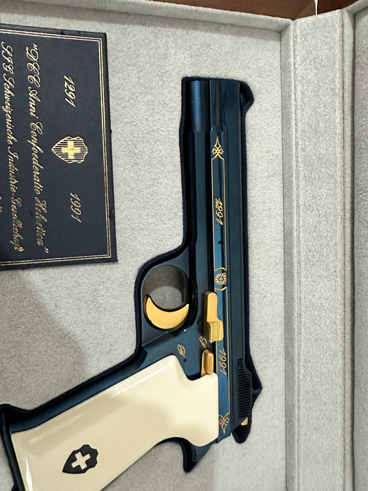 Sig P210 Swiss Confederation 700th Anniversary, 1991 yılında İsviçre Konfederasyonu’nun 700. yılı anısına üretilmiş özel ve sınırlı sayıda bir modeldir. Nitre mavi kaplama, altın detaylar ve özel işçilik kalitesiyle dikkat çeker. Bu seride gövde üzerinde “Confoederatio Helvetica” ibaresi ile 1291 ve 1991 tarihleri yer alır; orijinal özel kutusuyla sunulan örnekleri koleksiyoncular için ayrı bir değer taşır. Nadir bulunan, estetik ve koleksiyon değeri yüksek bir SIG Sauer P210 varyantıdır.