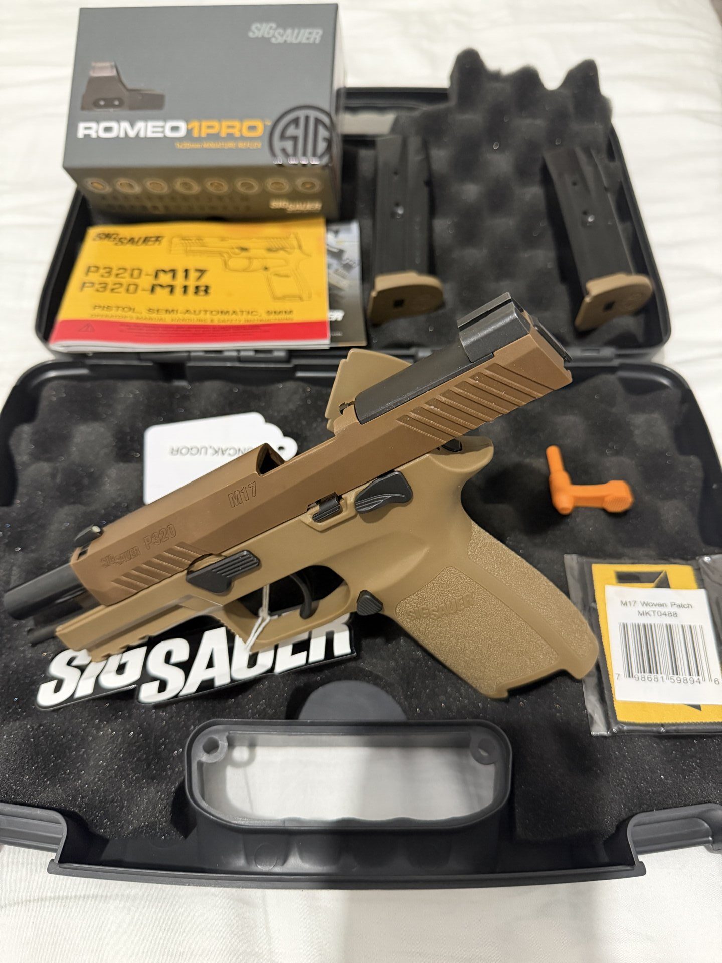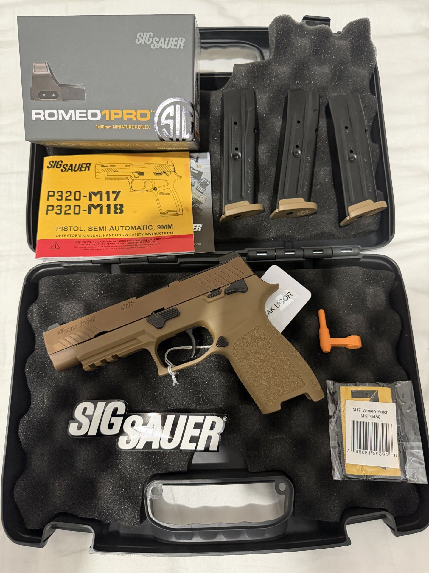 Sig Sauer P320 M17 tabanca, Sig Sauer Romeo1 Pro red dot ile birlikte verilecektir. Sıfır durumdadır ve orijinal kutusunda muhafaza edilmektedir. Amerika’dan görev dönüşünde permi hakkı ile getirilmiştir. Amerikan ordusunun taktik silahı olarak bilinen dikkat çekici bir modeldir. Temiz, yeni ve eksiksiz durumdadır. Detaylı bilgi için iletişime geçebilirsiniz.