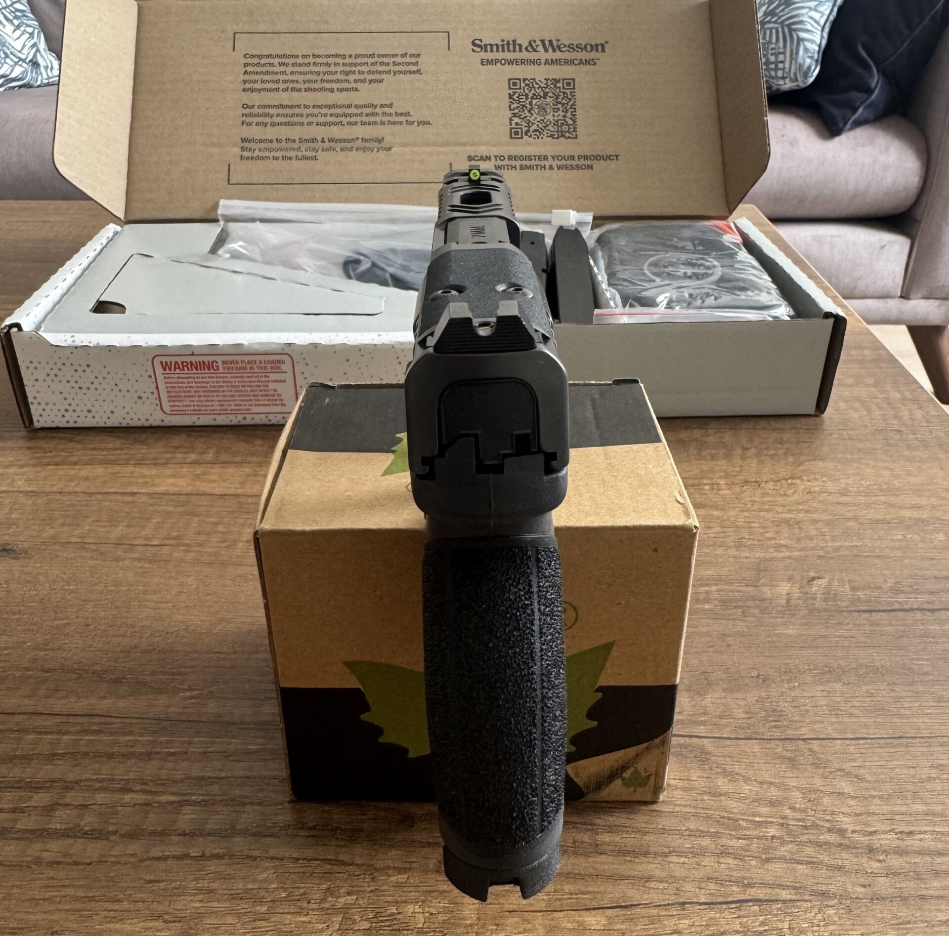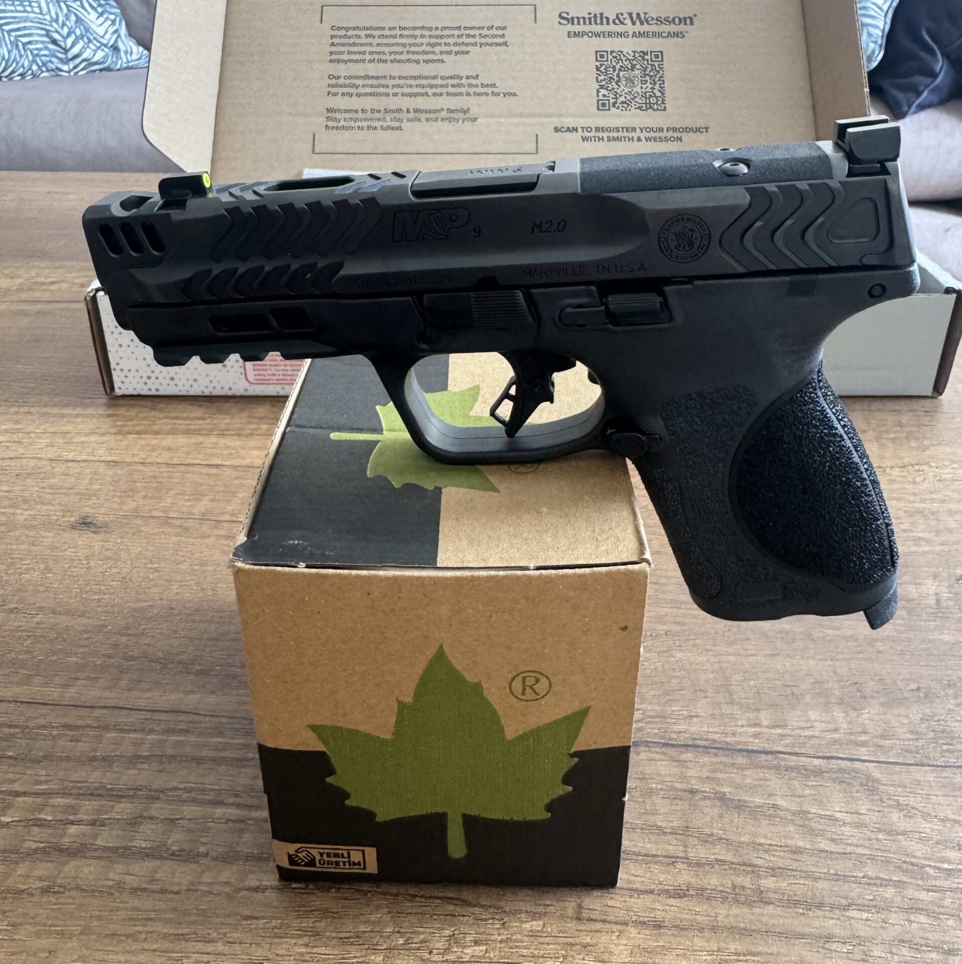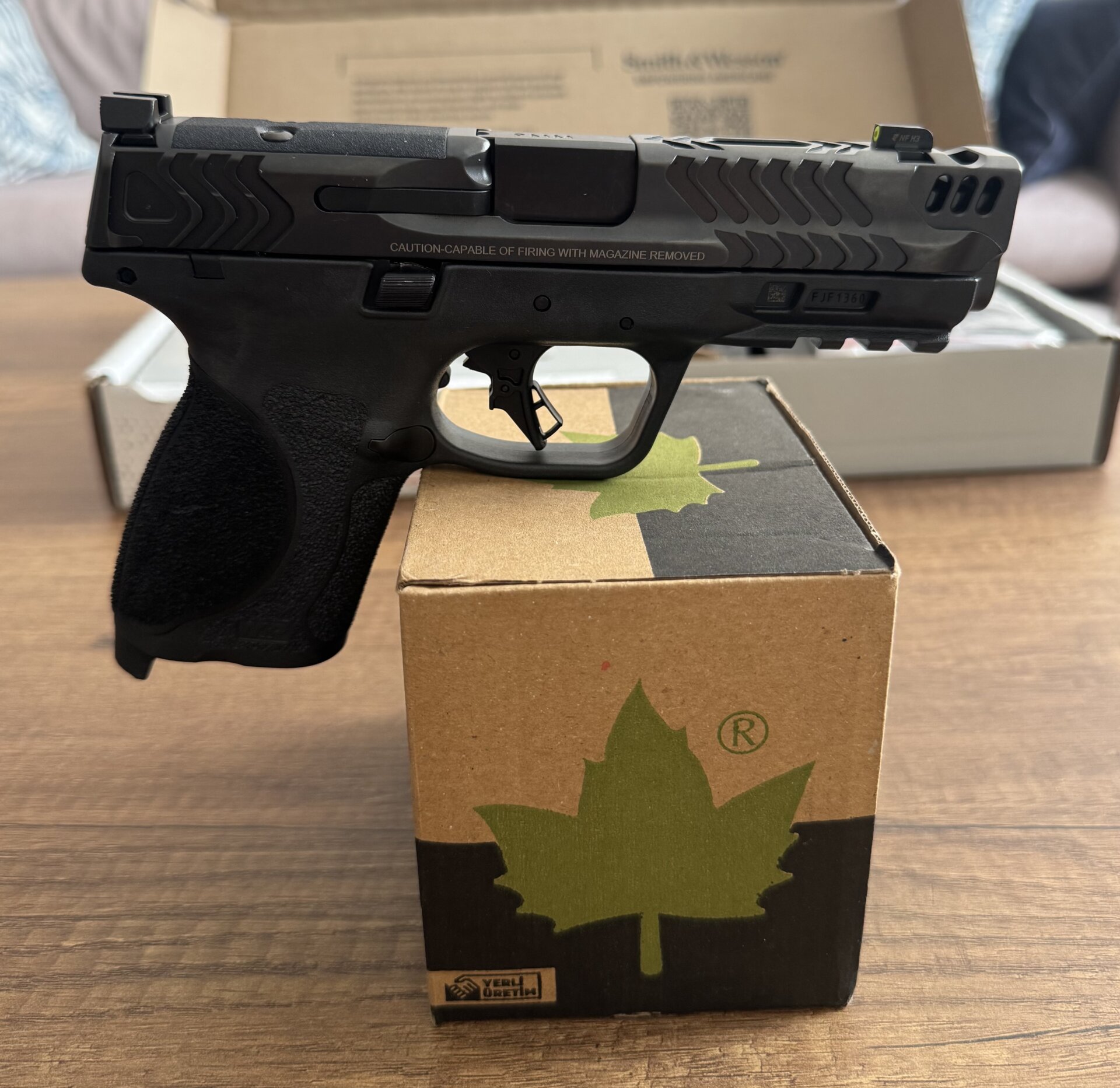 - Karartılmış tırtıklı arka nişangah, gece görüşlü ön nişangah.