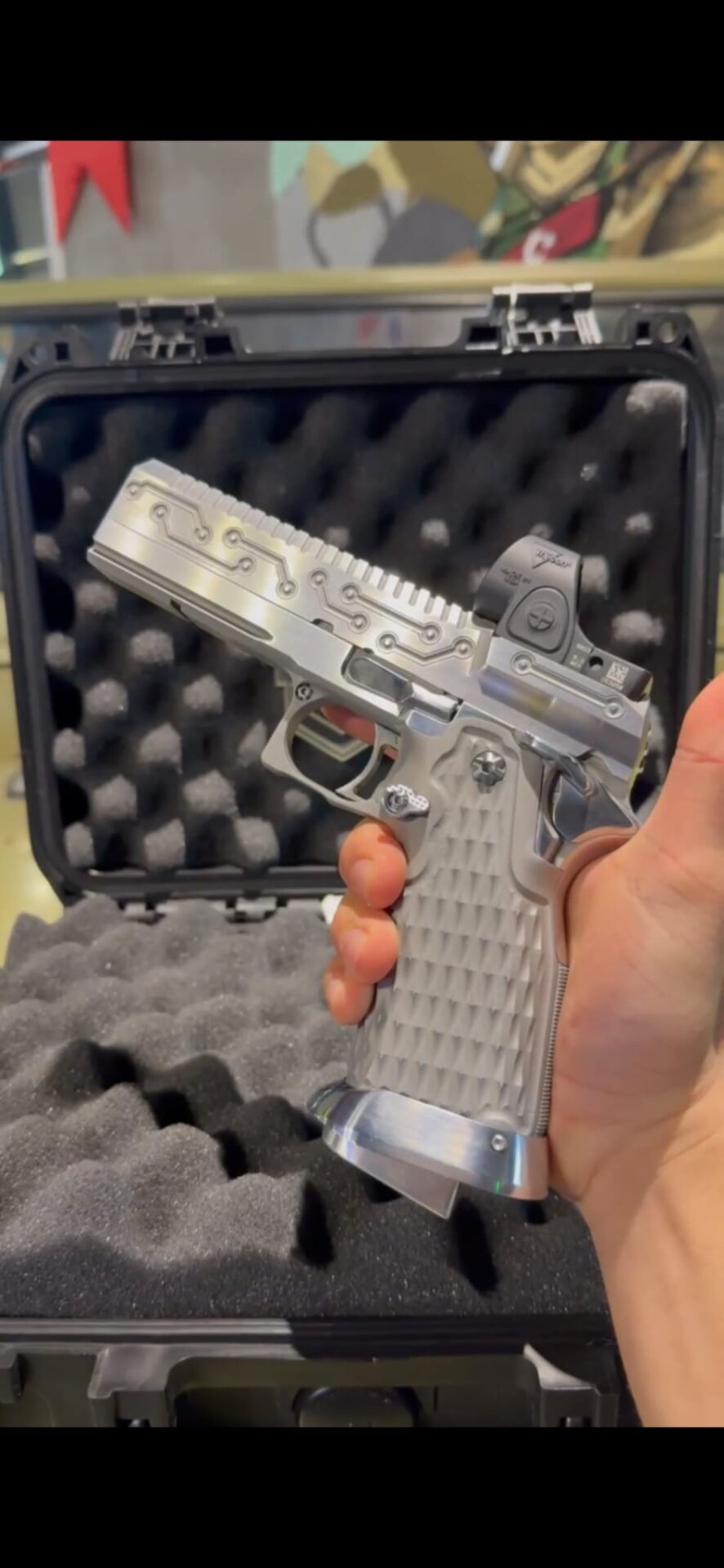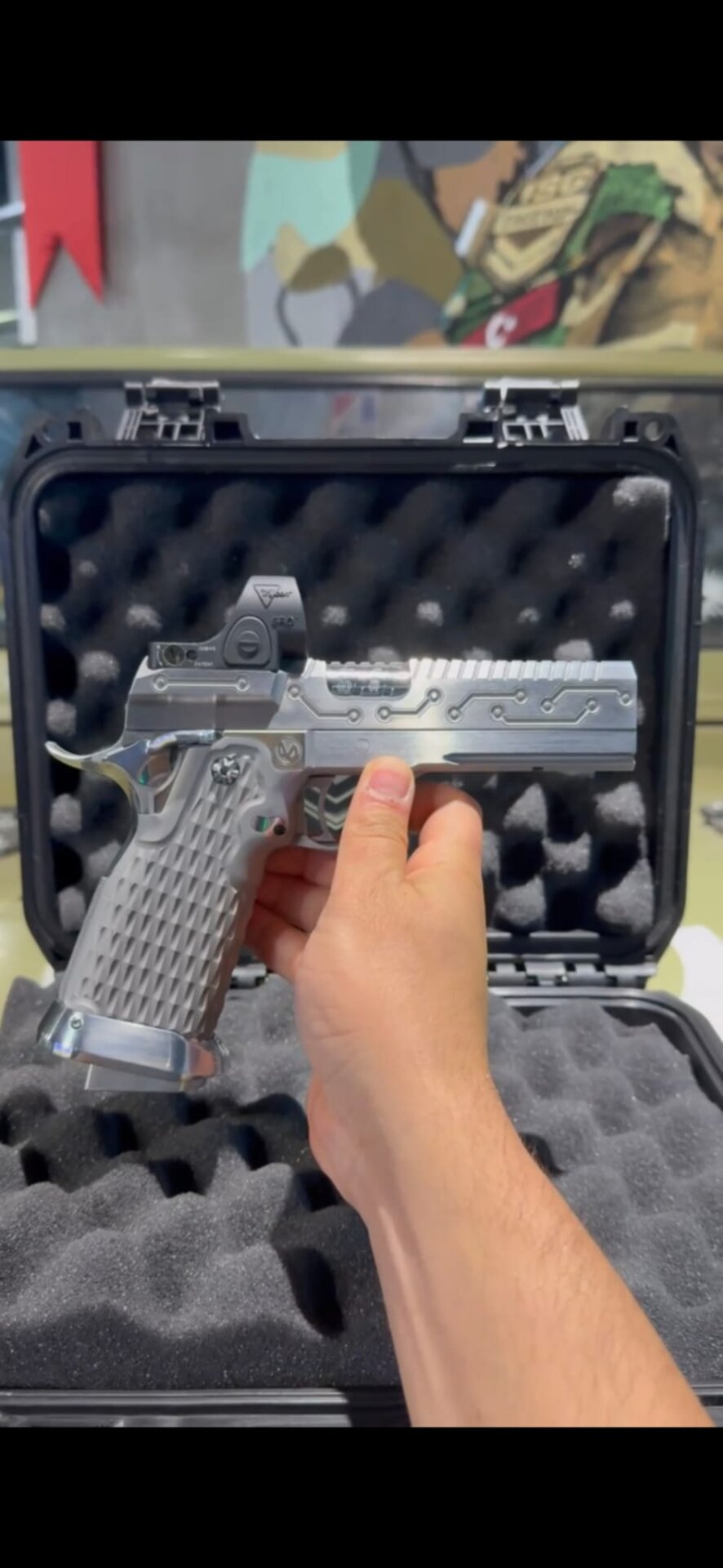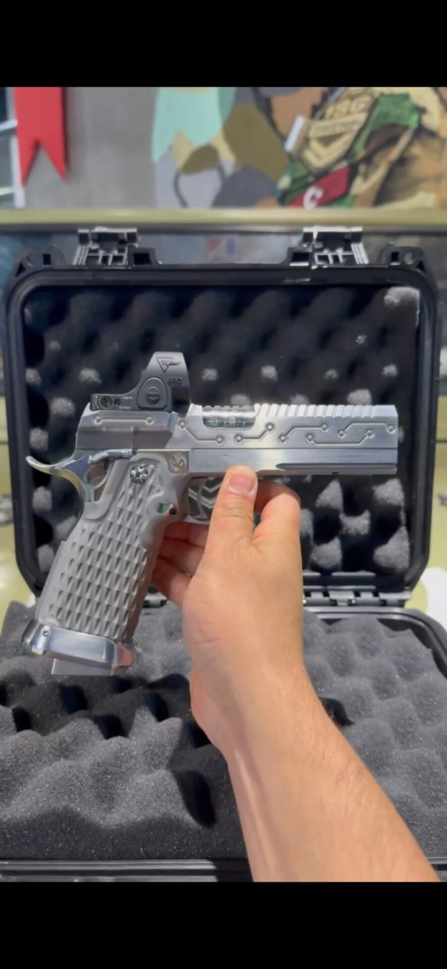 SV Infinity Custom 2011, 9×19 kalibre. El işçiliği “circuit” slide freze deseni ve üstte monte red-dot (RMR) ile hızlı hedefleme sağlar. Hafifletilmiş sürgü, agresif kavrama dokusu ve isabet odaklı tetik ayarıyla performans için üretilmiştir. Sıfır silahtır; fotoğraflardaki set dahildir. Fiyat ve detaylar için arayınız.
