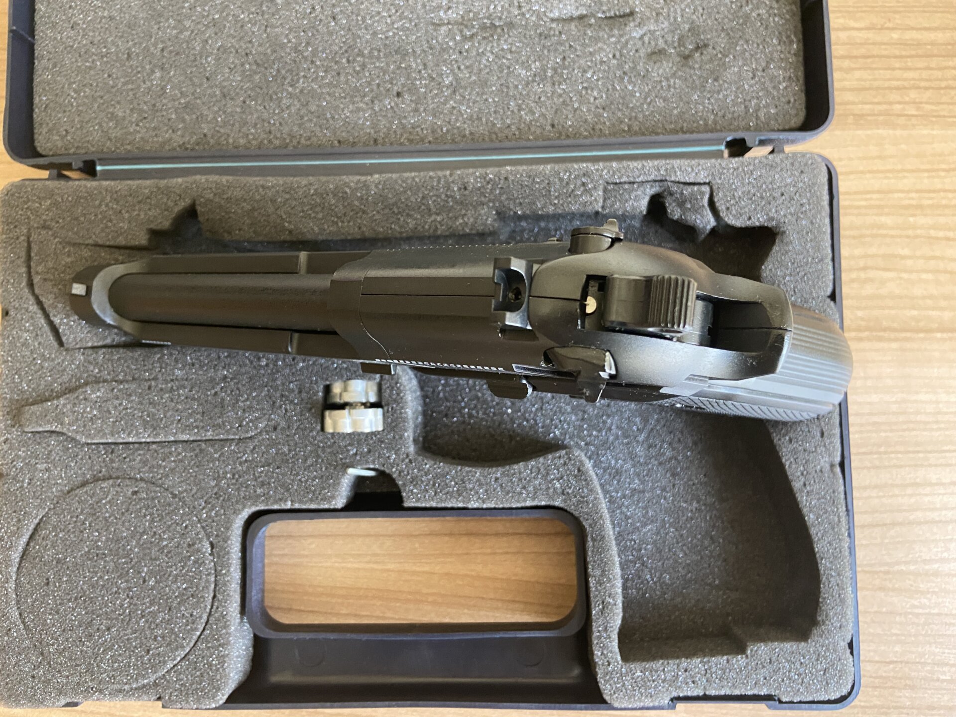 Umarex Beretta M92 FS Havalı Tabanca, Alman üretimi, en yüksek kaliteli full metal gövdeli bir havalı tabancadır. Kozmetik durumu 10/10’dur; hiçbir çizik, deformasyon veya çalışmayan aksamı yoktur. BB (bilye) değil, pellet (paraşüt mermi) attığı ve namlusu yivli olduğu için isabet oranı oldukça yüksektir. 10-15 metre hedef atışları için profesyonel bir tercihtir. Gerçek Beretta 92FS ile ağırlığı ve ele oturuşu neredeyse birebirdir (yaklaşık 1,2 kg). Full metal gövdesi sayesinde gerçeklik hissi üst seviyededir. Orijinal taşıma çantası, 2 adet 8’li döner şarjörü ve kullanım kılavuzu ile birlikte eksiksiz teslim edilecektir. CO2 tüpü ile çalışır; hem tek hem çift hareketli tetik mekanizması kusursuzdur.