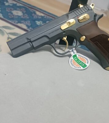 Sıfır hiç kullanılmamış altın kaplama tabanca